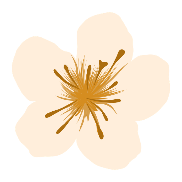 Stylized orange flower with ten petals and a rounded center on a black background.